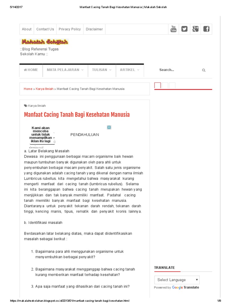 Manfaat Cacing Tanah Bagi Kesehatan Manusia Makalah Sekolah