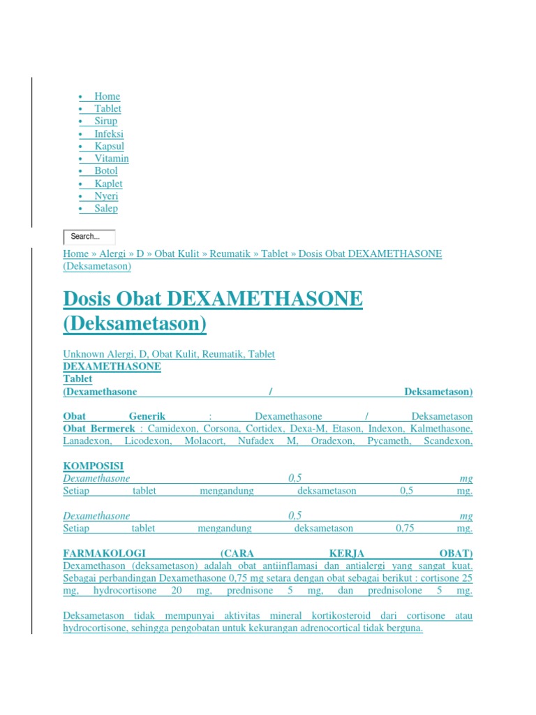 Obat dexamethasone 0 5 mg. Each tablet contains 05 mg dexamethasone. Tiap tablet mengandung deksametason 05 mg. Sediaan obat dexa harsen berupa dexamethasone 05 mg dan dexamethasone 075 mg tablet.