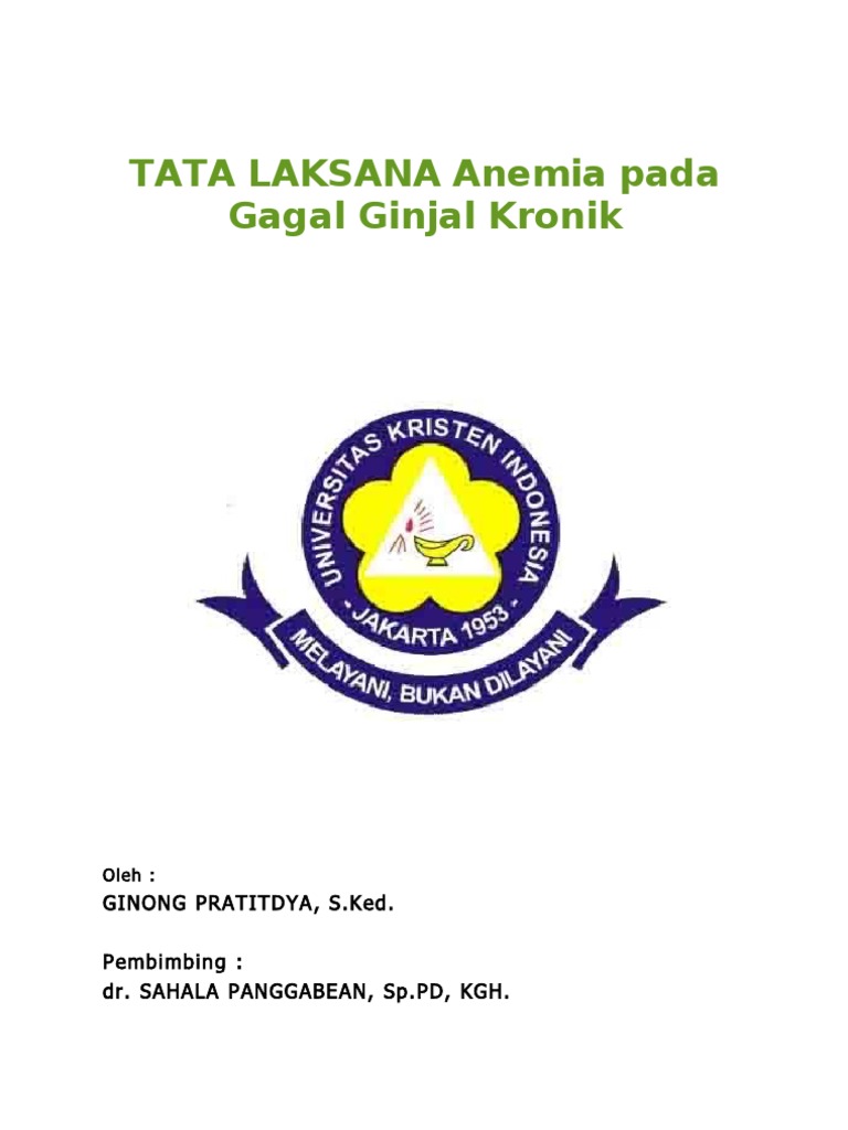 Tata Laksana Anemia Pada Gagal Ginjal Kronis