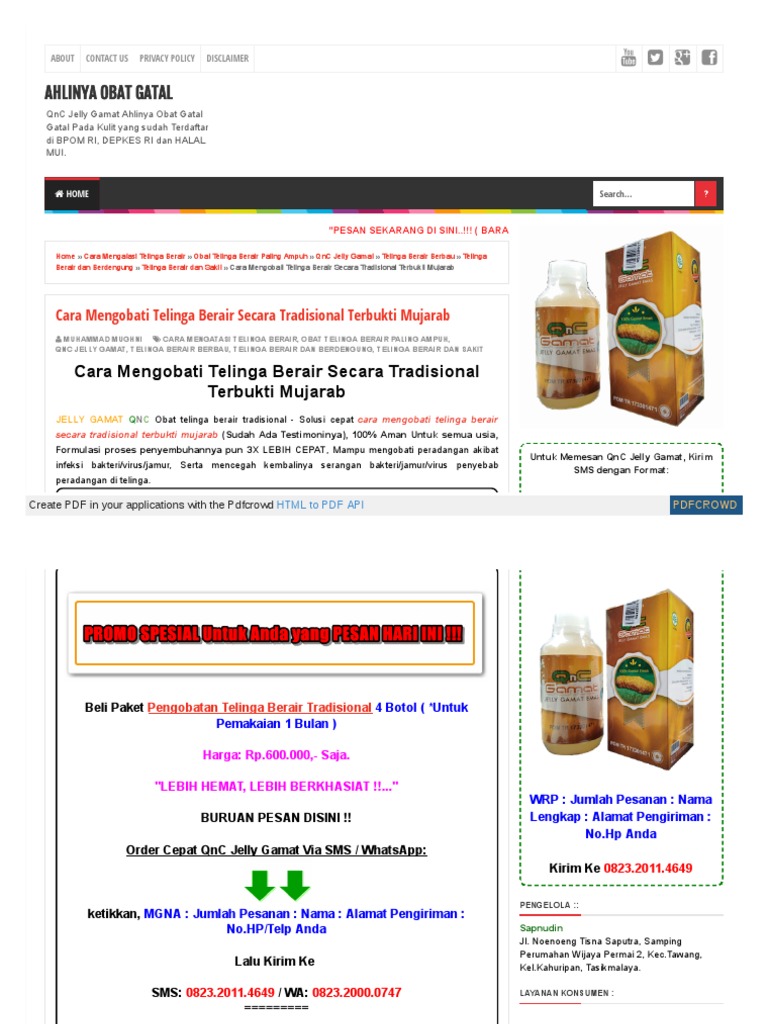 Di mana khasiatnya untuk mengatasi mengobati dan menyembuhkan telinga berair telah terbukti dengan banyaknya kesaksian langsung dari para konsumen yang sudah merasakan khasaitnya. Barang tidak sampai garansi uang kembali.