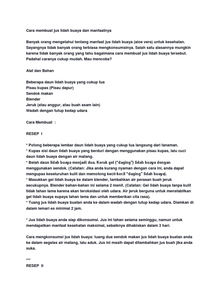Wow Inilah Cara Pembuatan Jus Lidah Buaya Dan Manfaatnya Bagi