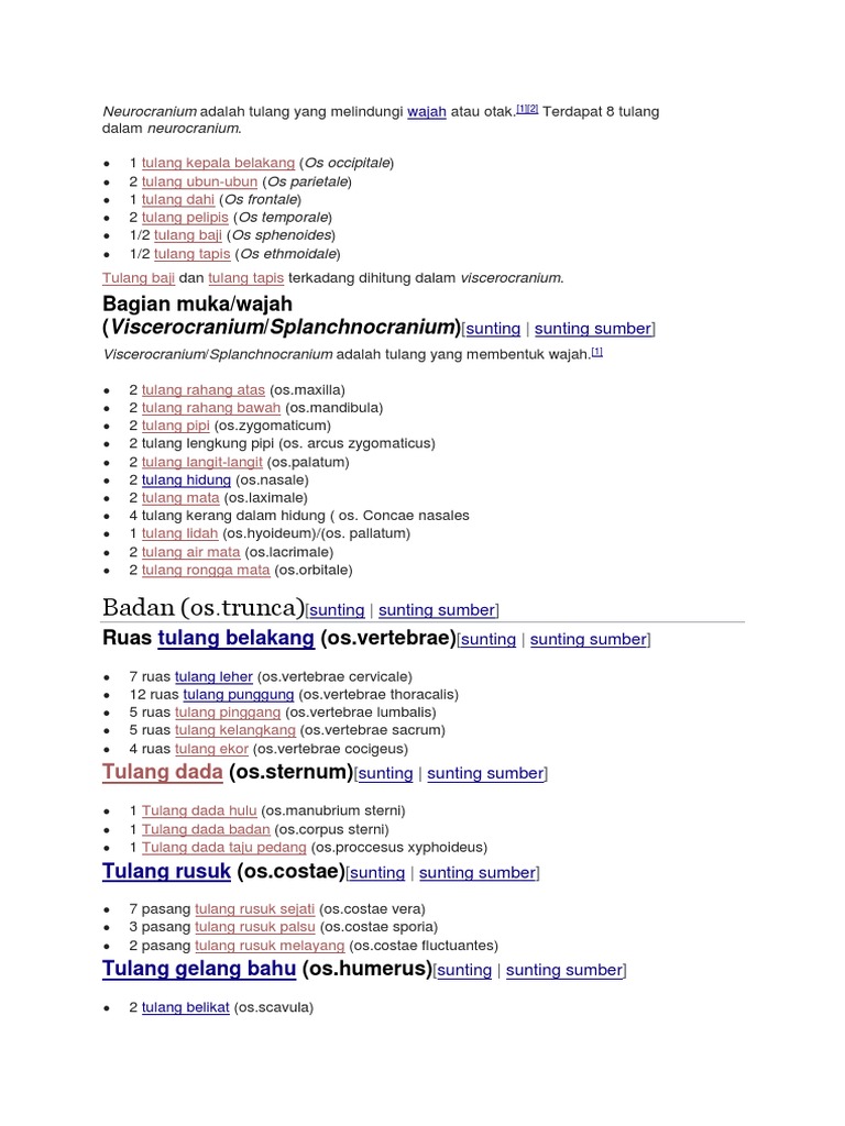 Jumlah Tulang Tengkorak Tulang Belakang Tulang Dada Tulang Rusuk