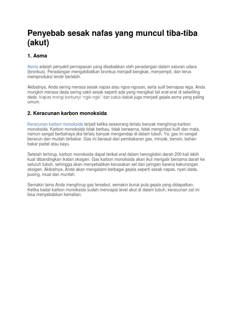 Penyebab Sesak Nafas Yang Muncul Tiba