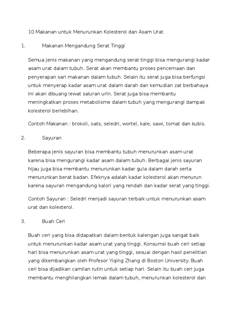 10 Makanan Untuk Menurunkan Kolesterol Dan Asam Urat Docx