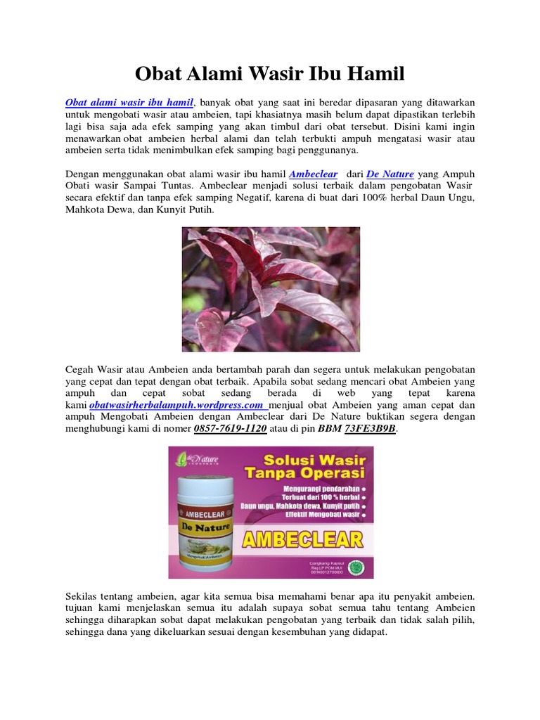 Obat alami ambeien untuk ibu hamil. Obat alami wasir untuk ibu hamil pengobatan hemoroid wasirambeien paling ampuh mujarab manjur terbukti pengalaman sembuh dengan obat herbal alami ini. Hal tersebut juga memang sangat mengganggu dan penyebab adanya rasa tidak nyaman pada bagian anus obat wasir manjur. Seperti menambah jumlah asi dan mempercepat penyembuhan akibat jahitan saat melahirkan.