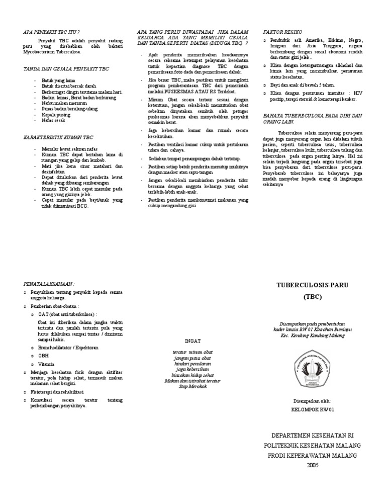 Home kesehatan tbc adalah penyakit radang paru paru gejala penyakit ini adalah tuberkulosis mengakibatkan reaksi jaringan yg aneh di dalam paru paru yg meliputi penyerbuan daerah terinfeksi dari makrofag pembentukan dinding disekitar lesi oleh jaringan fibrosa yg membentuk apa yg disebut tuberkel. Bakteri ini masuk kedalam paru paru dan berkumpul hingga berkembang menjadi banyak terutama pada.