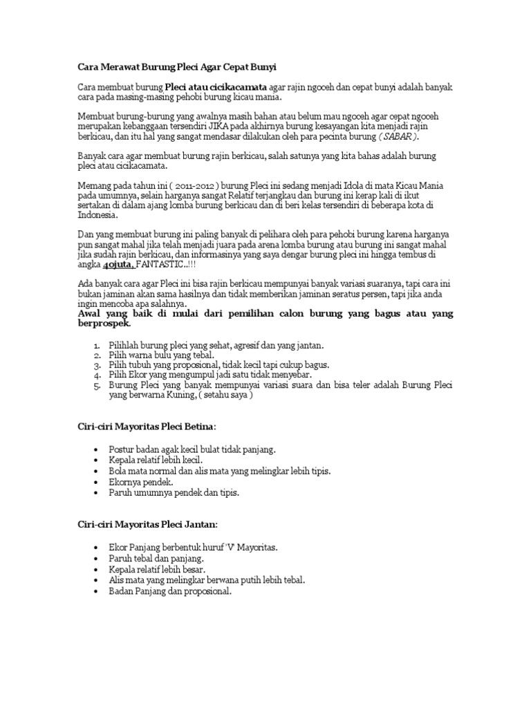 Cara Merawat Pleci Agar Cepat Gacor Video Belajar Cara Bikin Cara