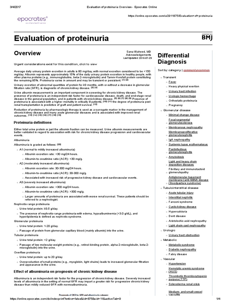Evaluation Of Proteinuria Overview Epocrates Online Chronic