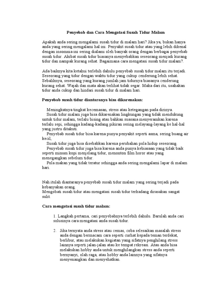 Penyebab Dan Cara Mengatasi Susah Tidur Malam Doc