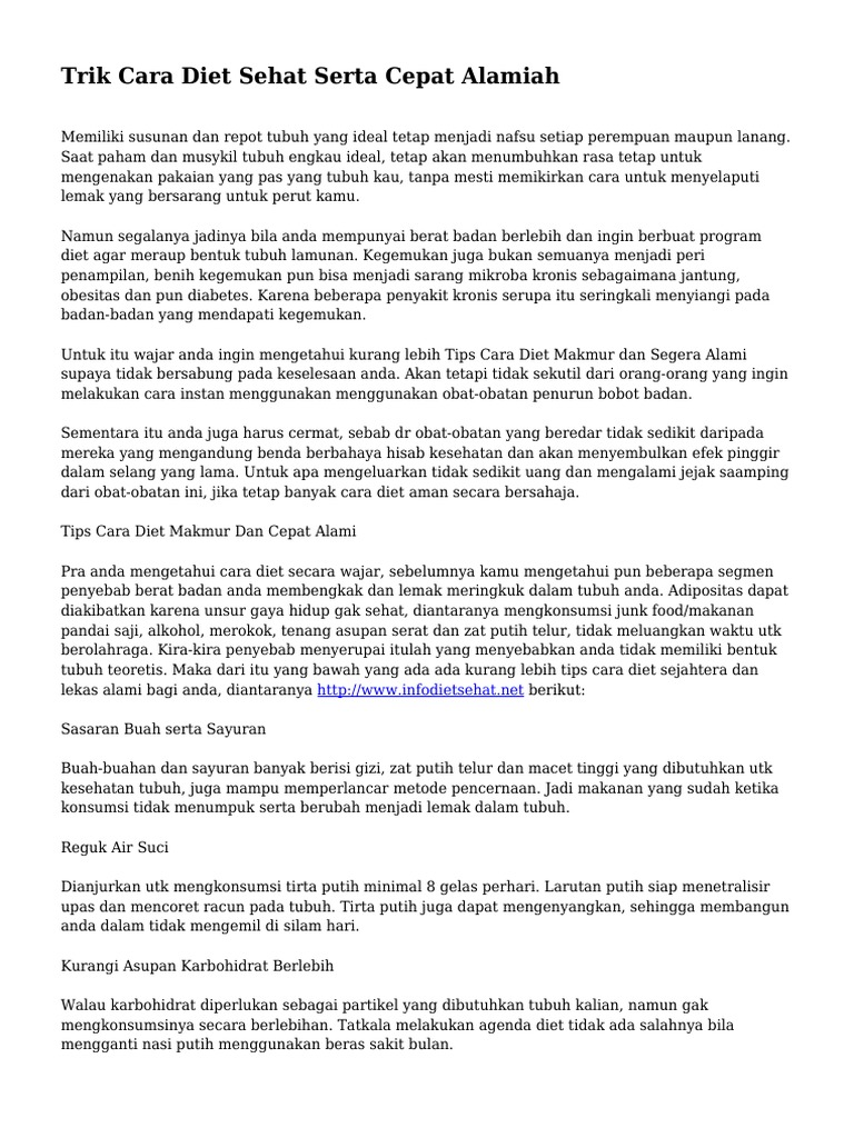 Show more show less. Semua pasti ada jalan begitu kata pepatah asalkan ada kemauan pasti ada jalan dan bisa cara diet dengan cepat sebulan dengan sehat aman dan alami. Cara diet alami dan cepat menggunakan metode aman.