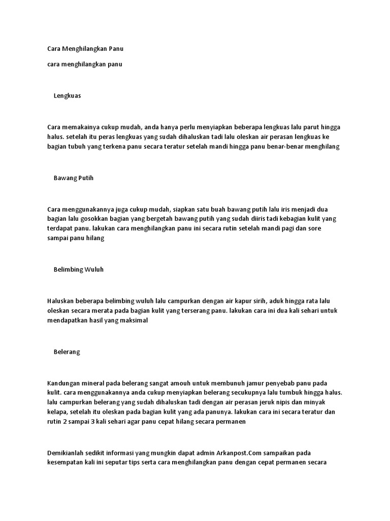 Cara menyembuhkan panu dengan cepat. Cara mengobati panu dengan lengkuas. Untuk tahu lebih tentang apa itu penyakit panu silahkan baca ini penyakit panu. Cara mengobati panu secara alami.