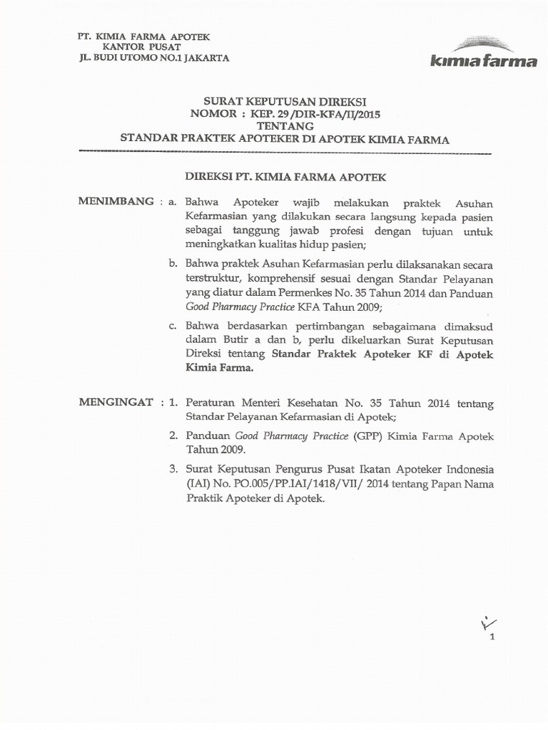 Kep 29 Standar Praktek Apoteker Di Apotek Kimia Farma Pdf