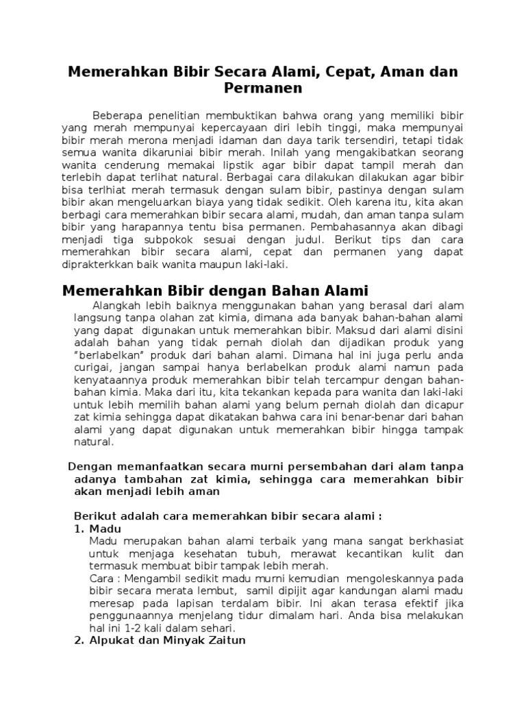 Memerahkan bibir secara alami dan permanen. Cara memerahkan bibir permanen secara alami bibir yang merah tentunya idaman sebagian besar wanita dan bahkan juga pria karena melalui bibir merah inilah penampilan mereka akan jauh lebih baik. Cara memerahkan bibir secara alami selanjutnya dengan memanfaatkan alpukat. Sudah bukan hal.