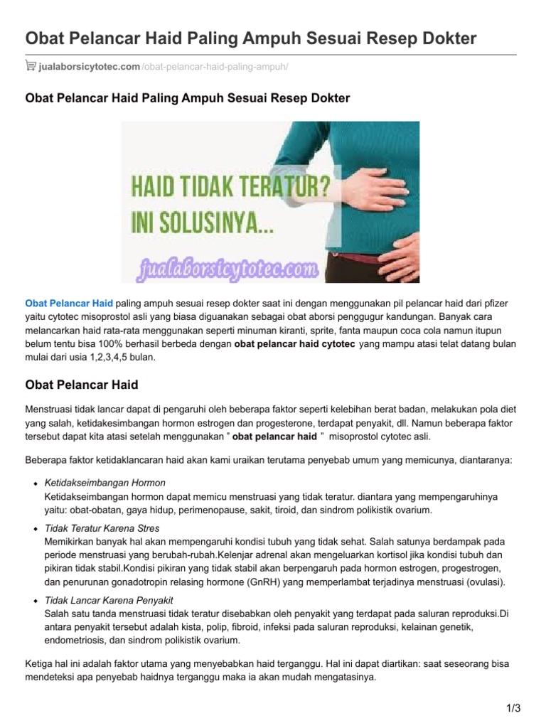 Obat pelancar haid resep dokter. Obat pelancar haid yang kami jual ini di khusus kan untuk menggugurkan kandungan dengan janin yang kuat sekalipun. Obat pelancar haid resep dokter. Obat pelancar haid di apotik kimia farma yang terbukti ampuh lancarkan haid yang tidak teratur atau datang terlambat menurut resep dokter.