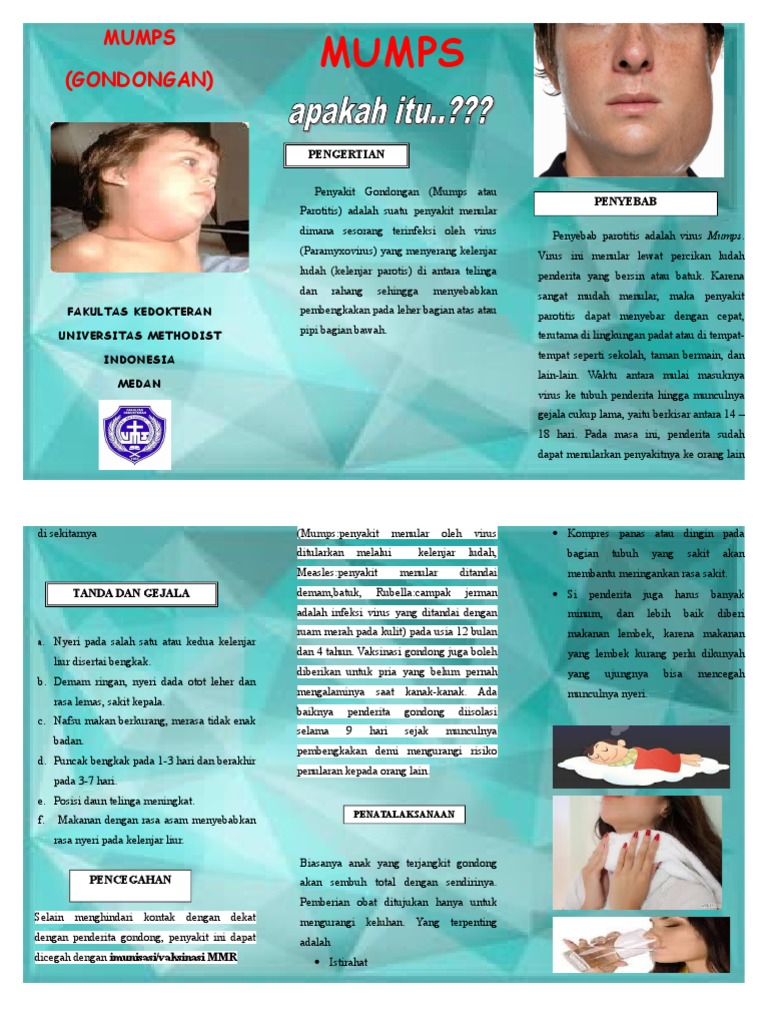 Penyakit gondongan pada anak dapat diketahui dengan muduah oleh dokter terlebih apabila terjadi kontak dengan penderita penyakit gondongan 2 3 minggu sebelumnya. Gondongan jika mengenai anak anak biasanya lebih aman dari pada mengenai remaja atau pria dewasa. Gejalanya sakit dileher dibawah telinga tadinya saya pikir sakit tenggorokan.