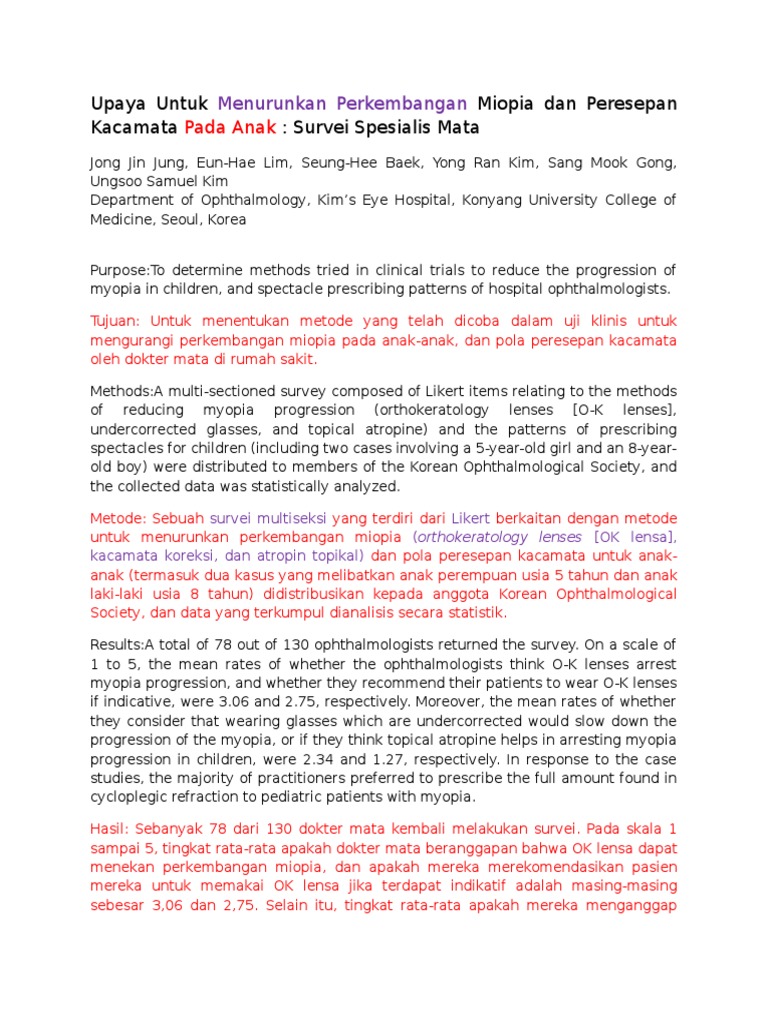 Upaya Untuk Mengurangi Progresi Miopia Dan Peresepan Kacamata Pada Anak