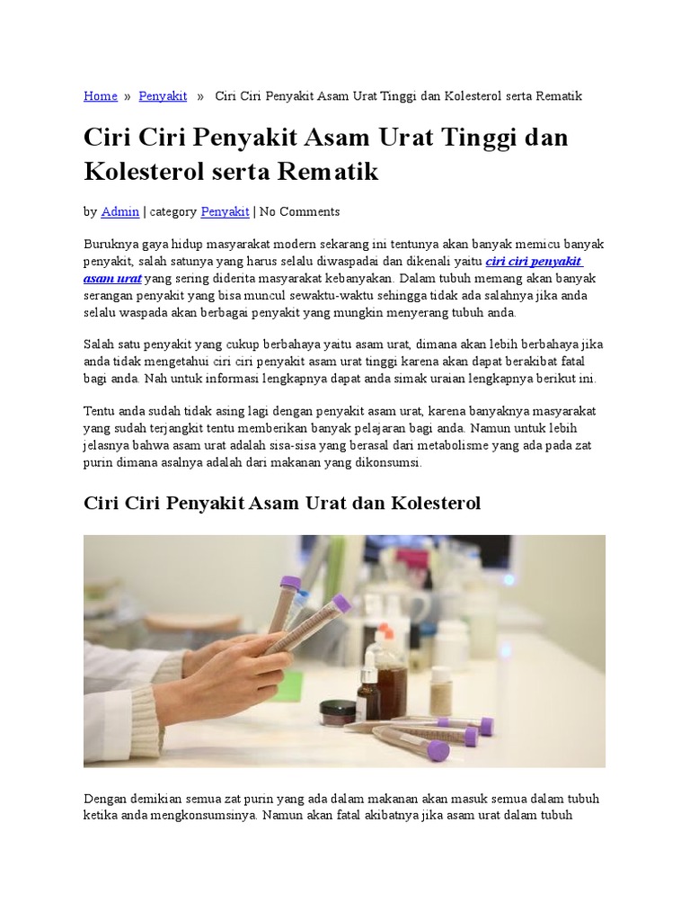 Ciri Ciri Penyakit Asam Urat Tinggi Dan Kolesterol Serta Rematik