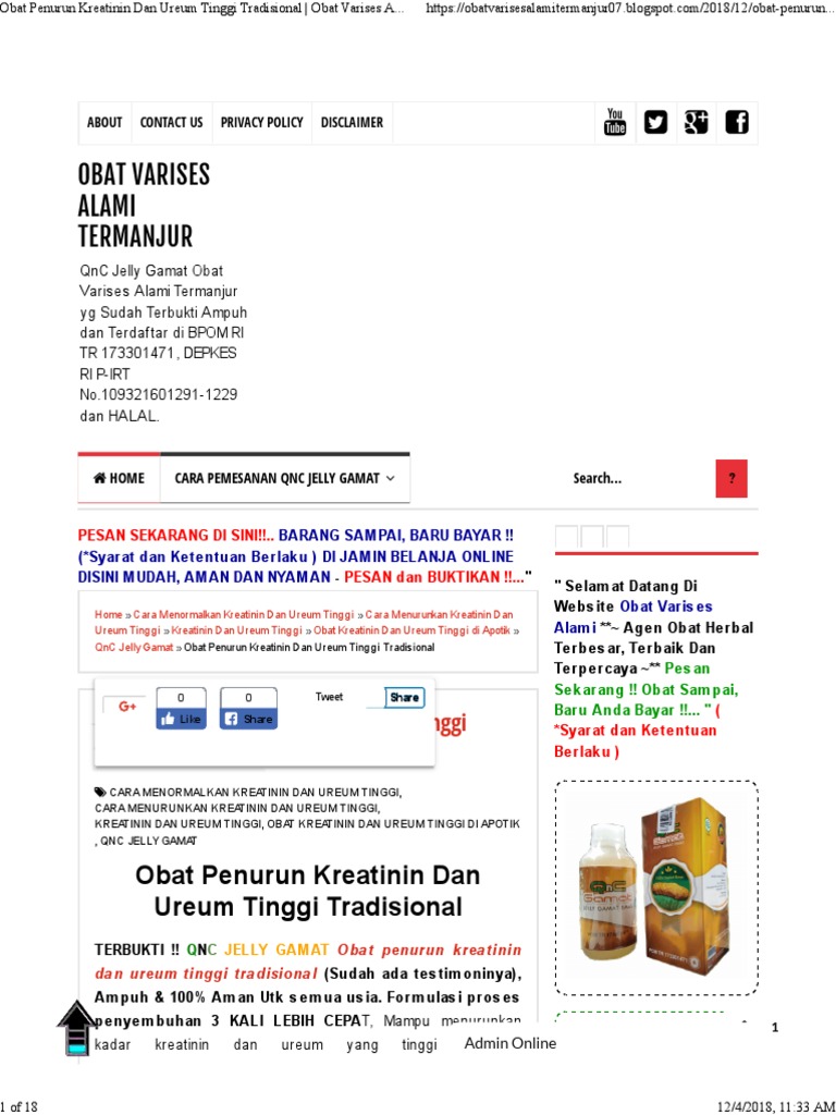 Obat Penurun Kreatinin Dan Ureum Tinggi Tradisional Qnc Jelly Gamat