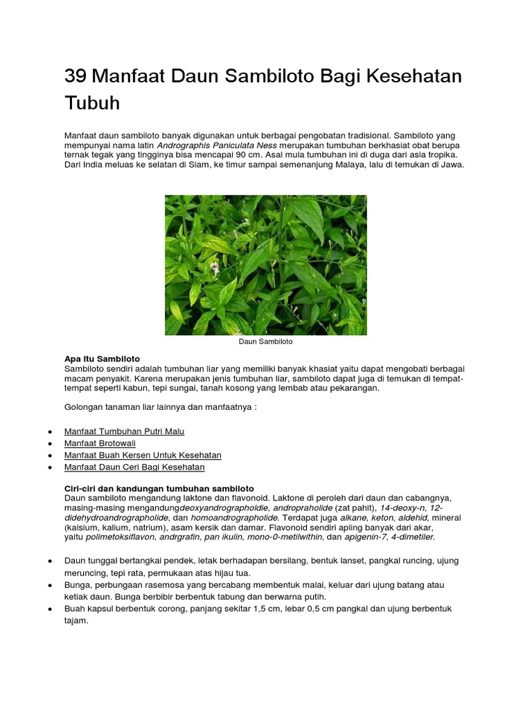 39 Manfaat Daun Sambiloto Bagi Kesehatan Tubuh