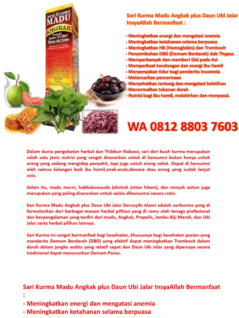 Madu Sari Kurma Angkak Propolis Jambu Biji Daun Ubi Jalar Untuk Dbd