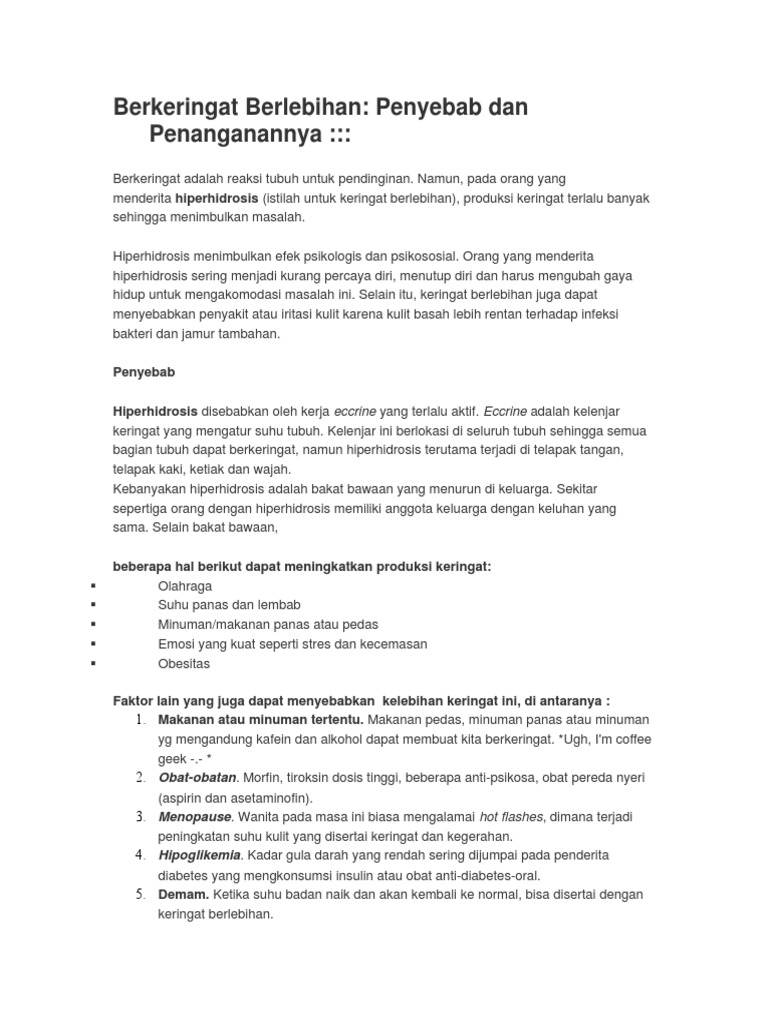 Coba buat catatan terkait apa saja yang dikonsumsi atau aktivitas yang dijalani sebelum tangan bekeringat. Telapak tangan basah mungkin sebagian dari anda ada yang masih belum mengetahui apa kondisi yang menandakan telapak tangan basah penting untuk anda mengetahui sejak dini kondisi yang sedang anda alami apakah pertanda penyakit berbahaya seperti paru paru basah atau penyakit berbahaya lainnya. Aluminum chloride gunakan antiperspirant atau salep yang mengandung aluminum chloride.
