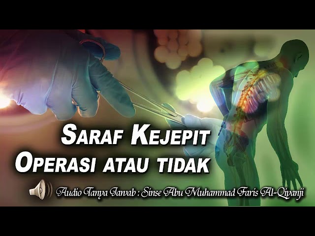 Diantara kasus syaraf kejepit akut ataupun kronis umumnya sering dilakukan tindakan operasi dengan tujuan menstabilkan tulang belakang caranya dengan menghubungkan bagian tulang belakang memakai kepingan di setiap bagian yang mengalami syaraf kejepit serta memakai sekrup untuk menahan tulang belakang yang digabungkan. Selama 3 minggu beliau tidak bekerja. Namun pada kasus yang tidak bisa membaik dengan pemberian obat obatan maupun fisioterapi operasi menjadi diperlukan untuk pengobatan syaraf kejepit tulang belakang.