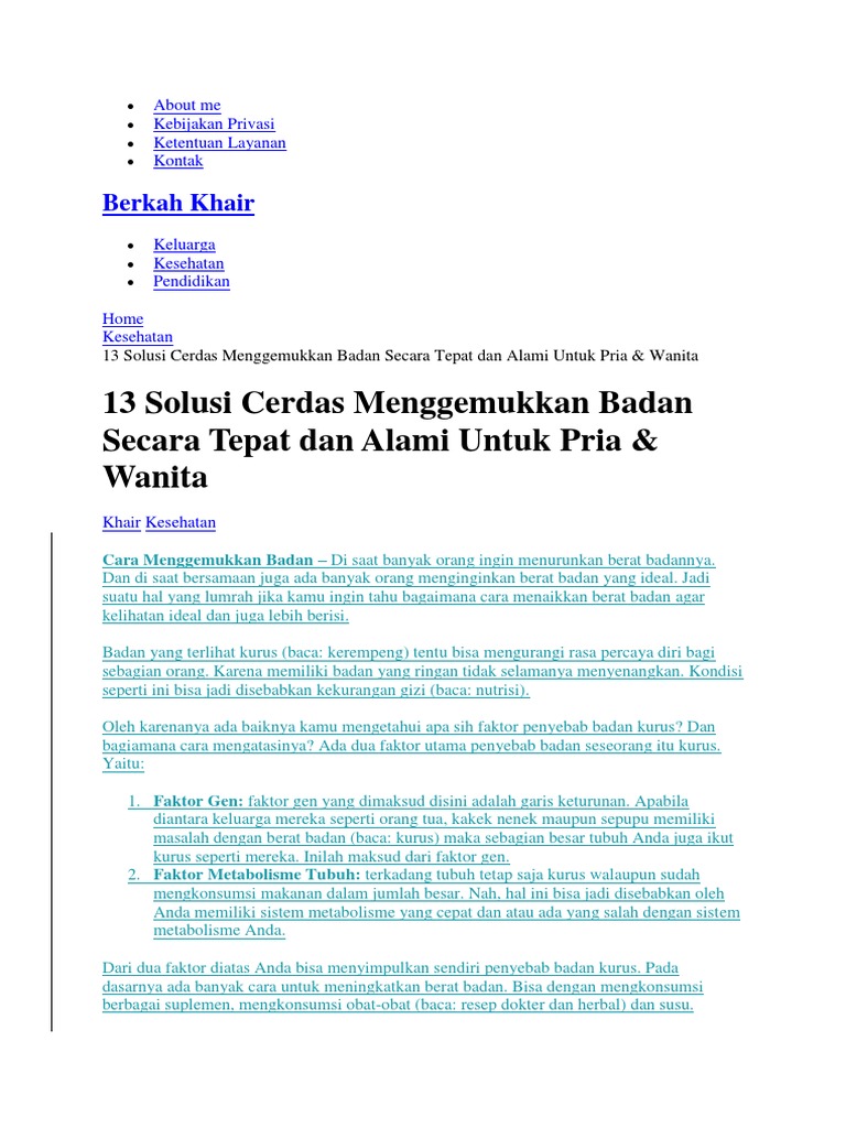 Kenyataannya ada sebagian orang yang justru berbakat kurus. Skip navigation sign in. Selain kelebihan berat badan atau kegemukan ternyata banyak juga yang mengalami masalah dengan badan yang terlalu kurus.