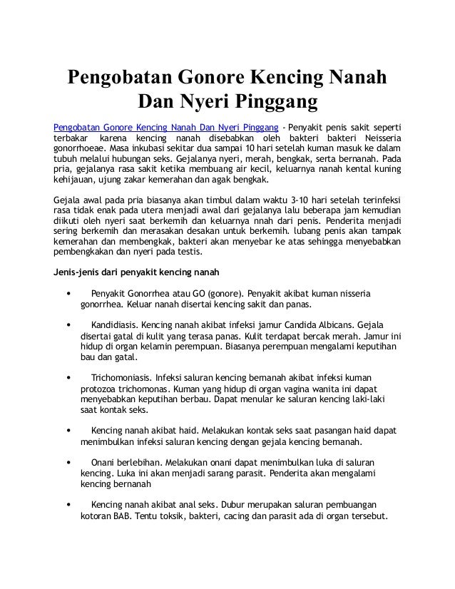 Pengobatan Gonore Kencing Nanah Dan Nyeri Pinggang