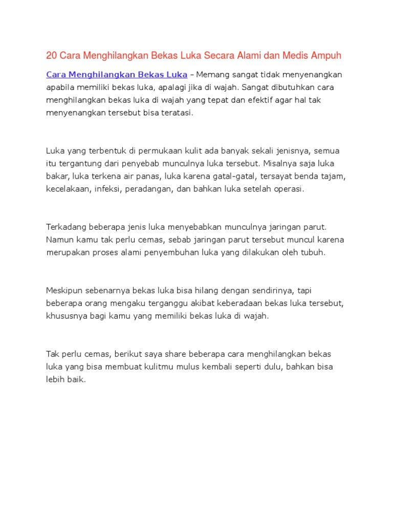 20 Cara Menghilangkan Bekas Luka Secara Alami Dan Medis Ampuh Docx