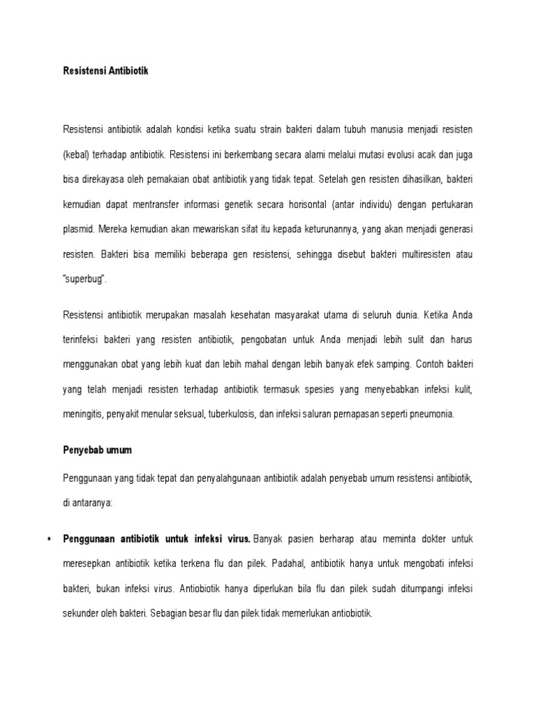Meski demikian fenomena ini masih sangat umum ditemukan dalam masyarakat. Sedangkan untuk penyakit penyakit ringan seperti influenza batuk maupun pilek dan penyakit sejenisnya tidak perlu menggunakan antibiotik sambungnya. Antibiotik digunakan untuk menyembuhkan penyakit yang berhubungan dengan infeksi bakteri misalnya untuk melawan infeksi bronchitis pneumonia radang tenggorokan dan lain sebagainya sehingga tidak bisa digunakan secara sembarangan untuk pilek dan flu.