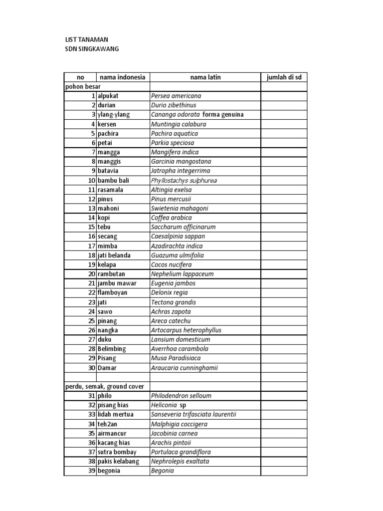 List Tanaman Dan Nama Latin Di Sd