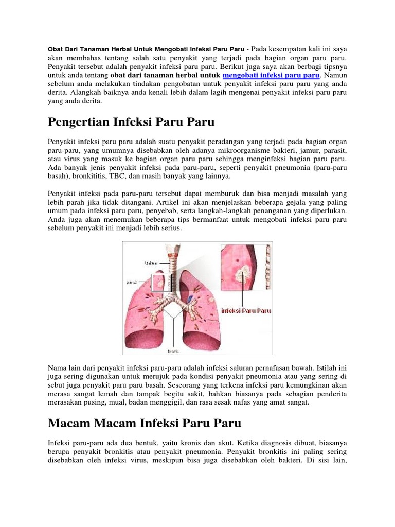 Produk obat herbal alami untuk mengatasi penyakit paru paru gejala tbc atau tb radang paru paru paru paru basah asma dll. Tanaman obat tradisional paru paru paru paru basah merupakan satu diantara jenis penyakit peradangan yang terjadi di organ dalam manusia dan sangat vital yaitu paru paru.