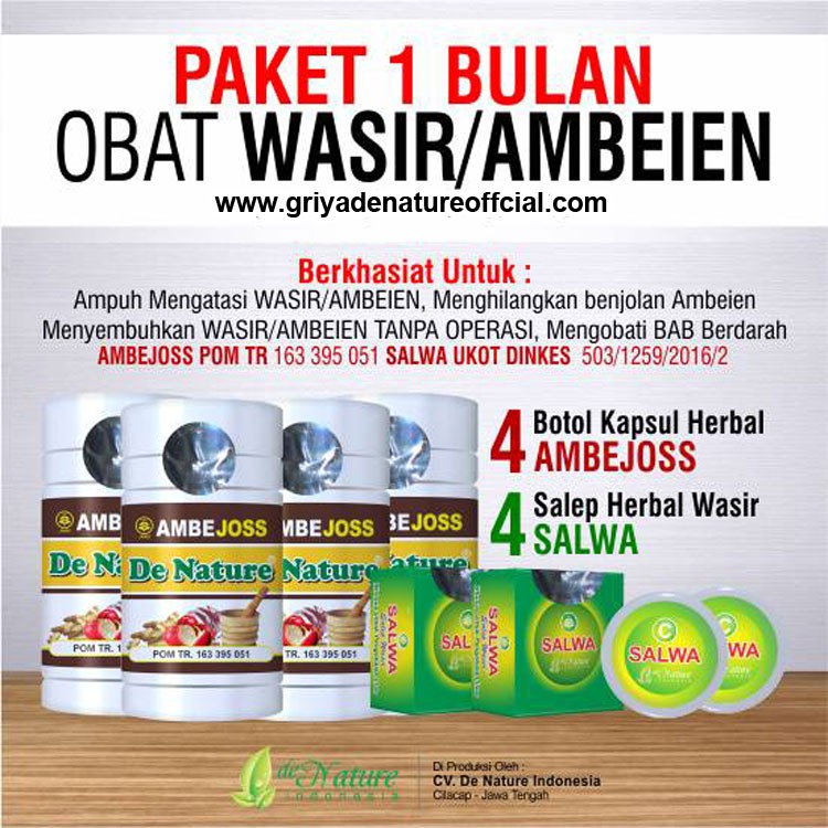 Cara mengatasi penyakit ambeien dengan metode yang tepat adalah dengan obat ambeien yang alami tanpa operasi. Hal ini sangat menyedihkan ketika anda berpikir anda mendapatkan beberapa bantuan dan kemudian rasa sakit kembali sama buruknya seperti sebelumnya. Obat wasir ampuh tanpa bedah selamat datang di situs resmi penjual obat herbal de nature wwwobatambeienwasirbizpada kesempatan ini saya kan mebagikan informasi tentang pengobatan wasir herbal yang efektif cepat sembuh tanpa harus operasi dan tak kambuh lagi.