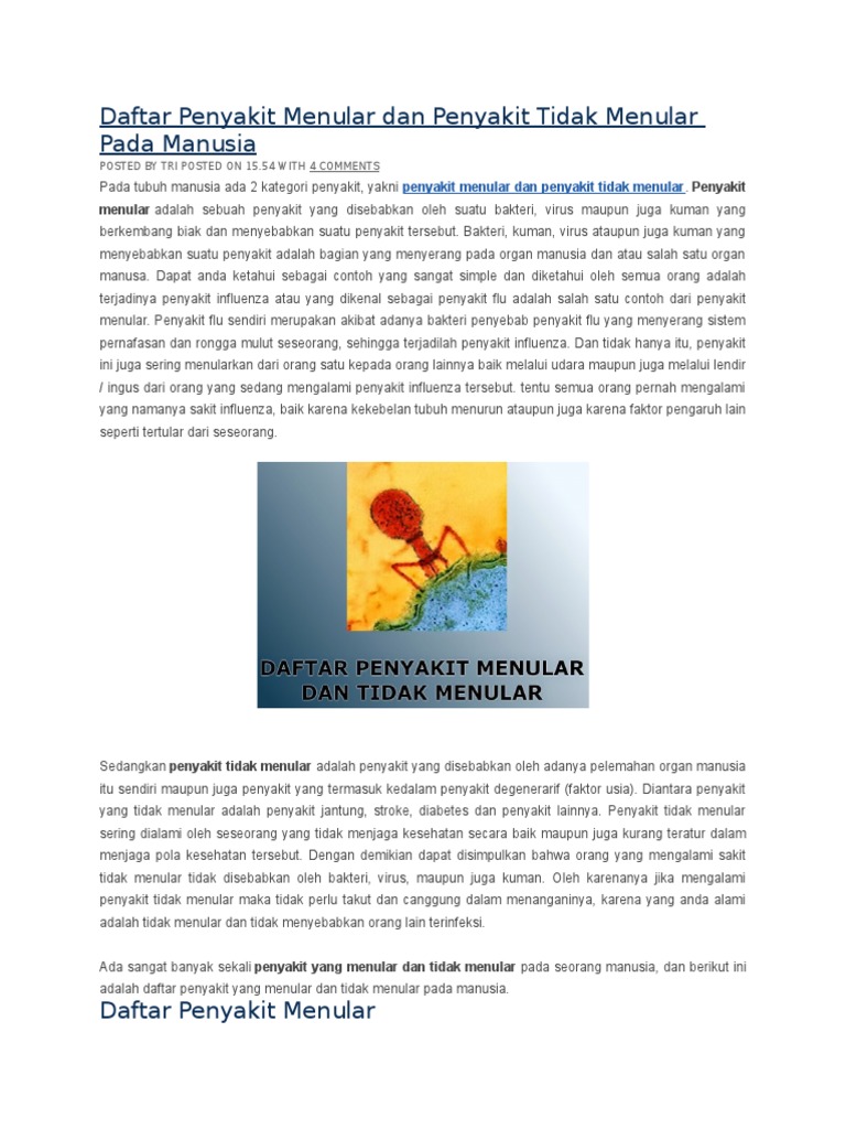 Daftar Penyakit Menular Dan Penyakit Tidak Menular Pada Manusia Docx
