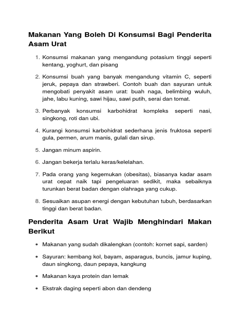 Makanan Yang Wajib Diketahui Untuk Diet Asam Urat Sahabat Hidup