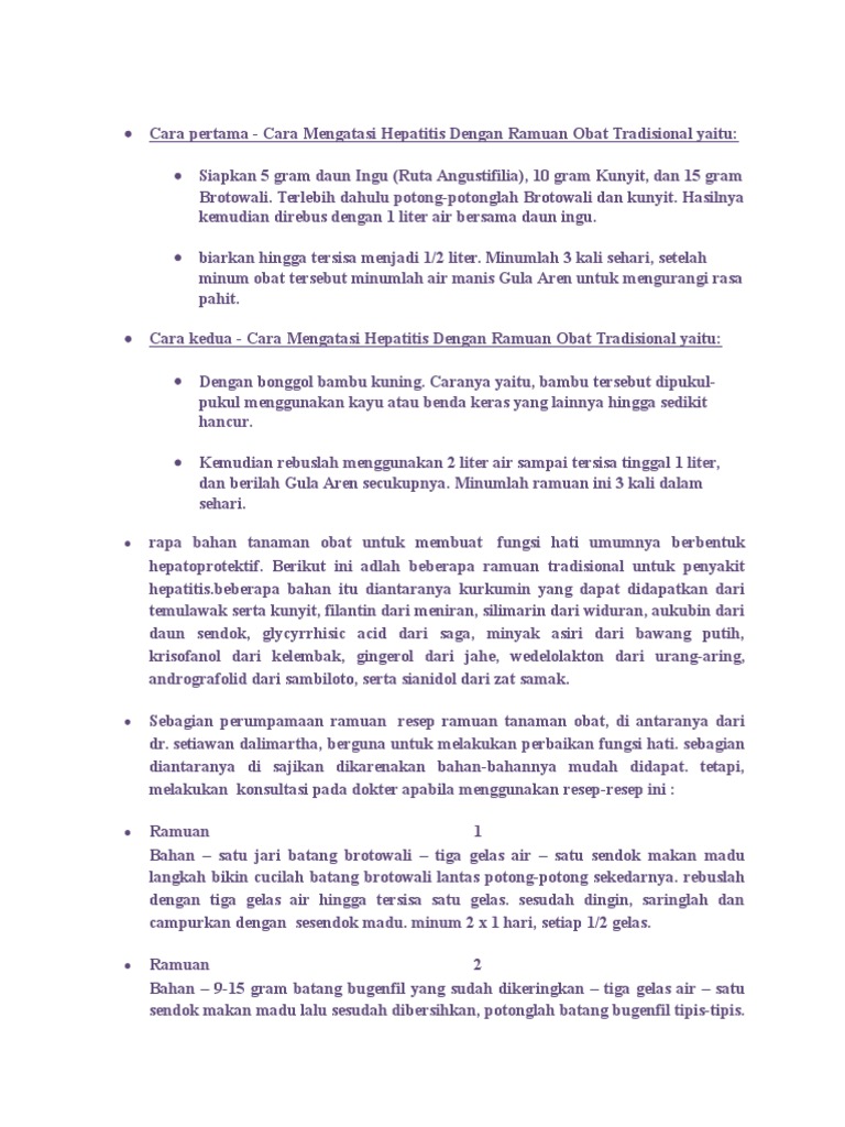 Cara Mengobati Hepatitis B Dengan Resep Obat Tradisional Obat