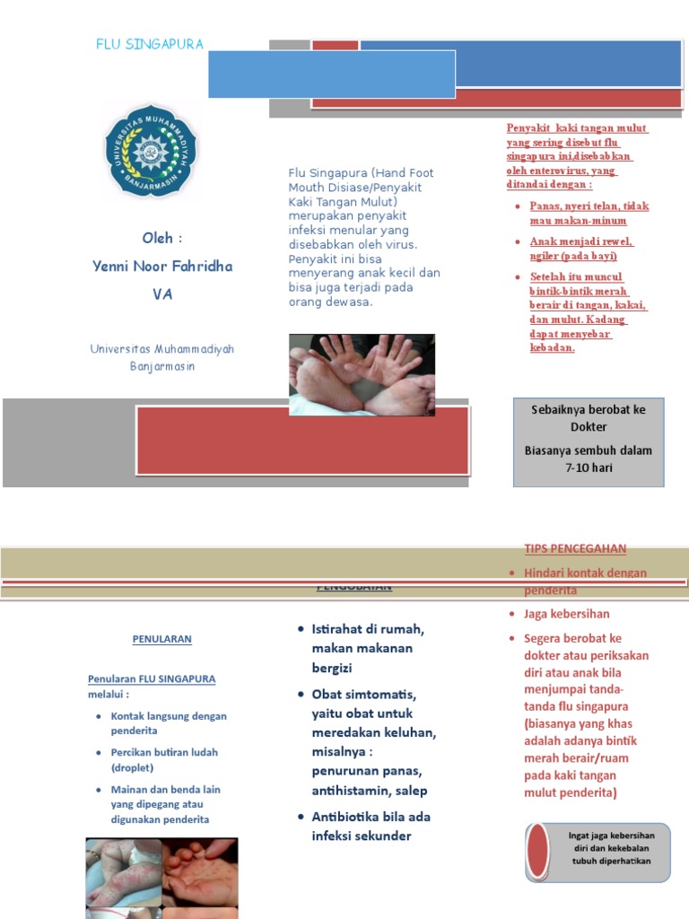 Flu singapura adalah kondisi yang juga punya nama lain hand foot and mouth disease flu singapura. Hal utama yang harus anda pastikan sebelum menerapkan obat flu singapura adalah memastikan apakah anak atau diri anda benar benar mengalaminya. 11 pengobatan flu singapura pada anak dan orang dewasa umumnya sama gejalanya pada influenza namun disertai ruam atau vesikel pada tangan dan kaki.