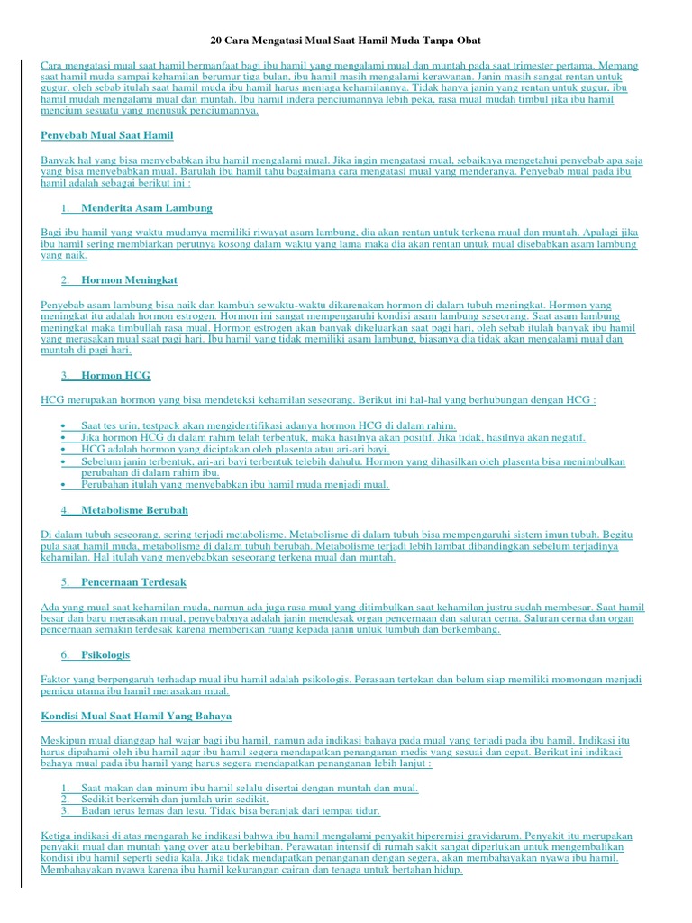 Baca artikelnya sekarang juga. Jika mengalami kondisi mual dan muntah yang separah ini sebaiknya diperiksakan ke dokter untuk mendapatkan pengobatan dan perawatan. Obat mual hamil muda ketika seorang wanita mulai menjalani masa kehamilan badan terasa mulai tak seperti biasa.