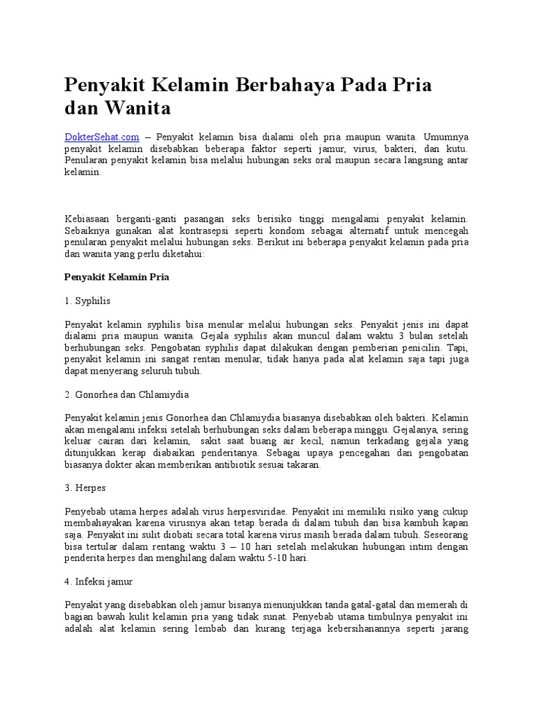 Penyakit Kelamin Berbahaya Pada Pria Dan Wanita Dokter Sehat