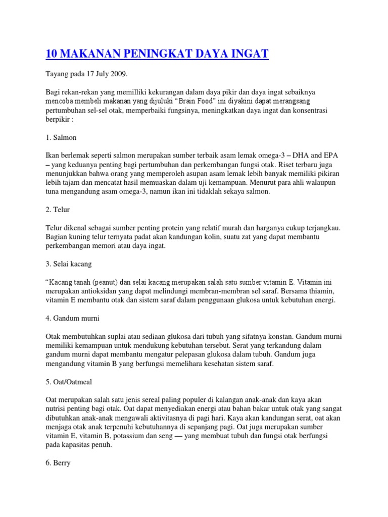 Selasa 18 januari 2011. Wa 0857 1024 0471 buah untuk meningkatkan daya ingat otak vitamin otak anak osb. Makanan lainnya yg bagus untuk otak.