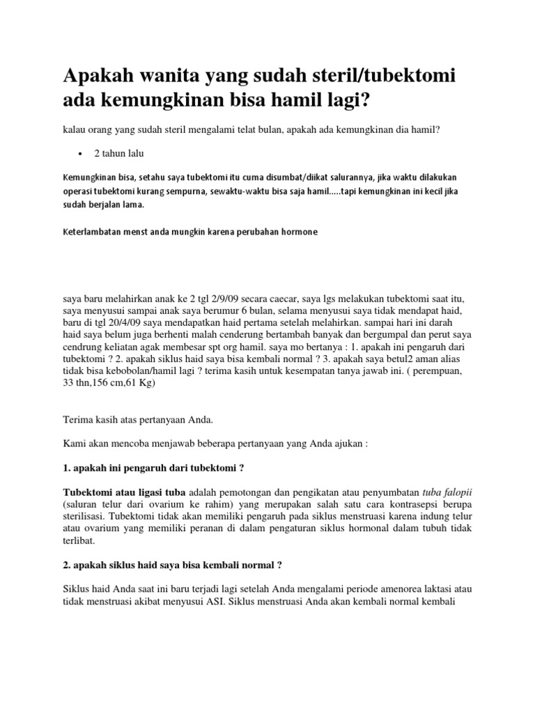 Apakah Wanita Yang Sudah Steril