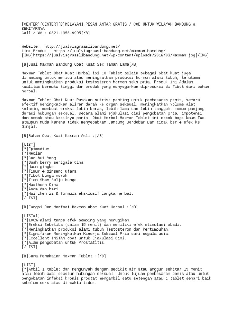 Toko Jual Obat Kuat Maxman Di Bandung Cicaheum Jl A Yani 082243588886