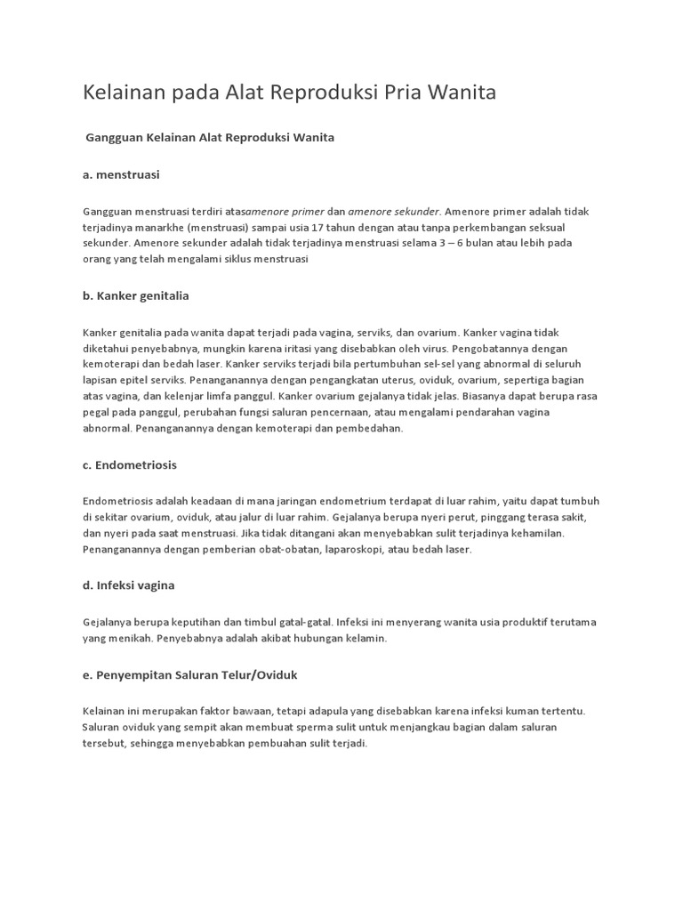 Kelainan Pada Alat Reproduksi Pria Wanita