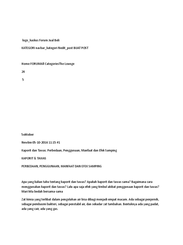 Kaporit tawas dan pac asep darmawanto monday 22 january 2018 kaporit. Tawas banyak dipakai untuk mengolah air sungai. Kaporit merupakan kalsium hipoklorit dengan rumus kimia caocl2.