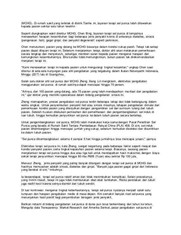Kelengkapan alat itu didukung bank jaringan yang makin berkembang. Kami mencatat ip pelapor untuk alasan keamanan. Stem cell dapat bermanfaat untuk mengurangi pemakaian obat immunosupresan pada pasien pasca transplantasi ginjal sebaiknya bila ingin mencoba stem cell sudah dilakukan sejak awal dimana fungsi ginjal masih di atas 50 dan nilai ureum serta creatinin belum tinggi.