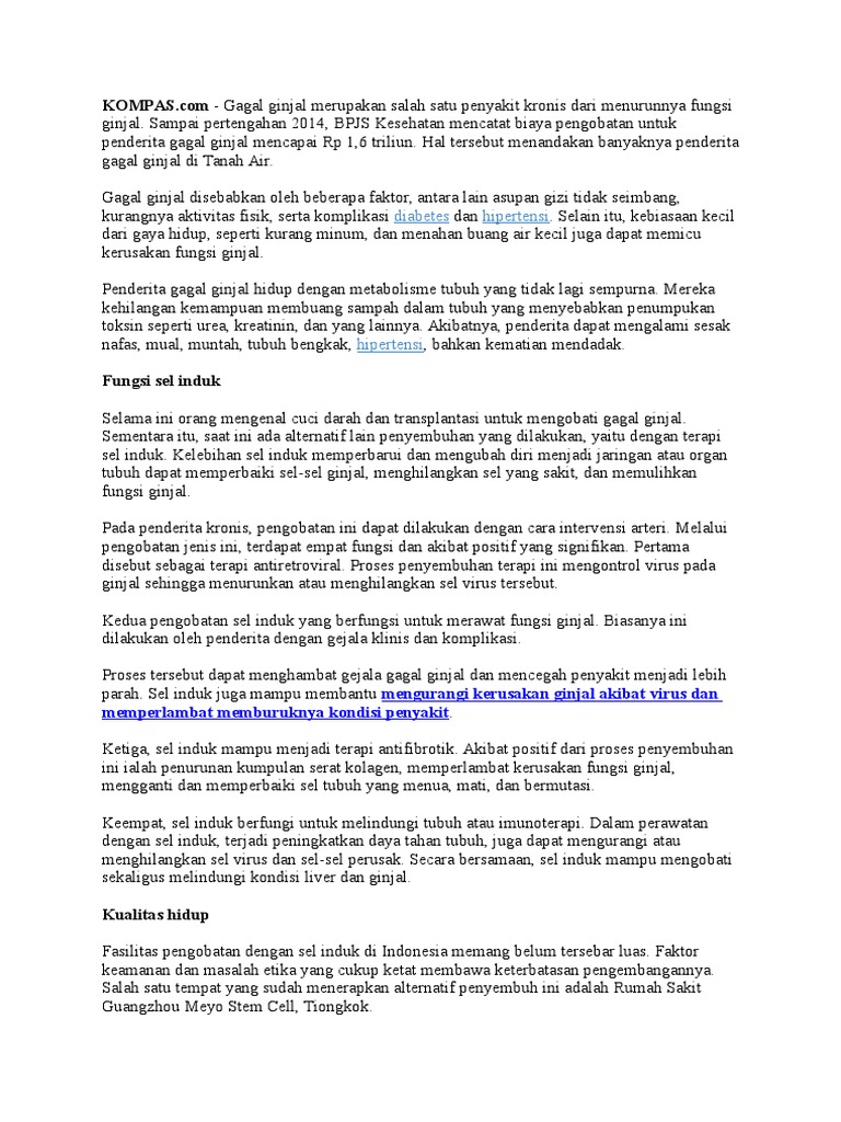 Pertarungan dengan gagal ginjal istri memberi. Pada keadaan terburuk pasien dapat terancam nyawanya jika tidak menjalani hemodialisis cuci darah berkala atau transplantasi ginjal untuk menggantikan organ ginjalnya yang. Tinjauan ilmiah stem cell in heart failure.