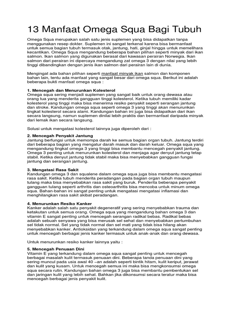 13 Manfaat Omega Squa Bagi Tubuh