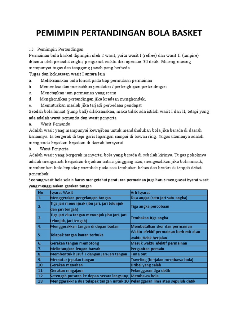 42 Tugas Wasit Bola Basket Pendidikan Update
