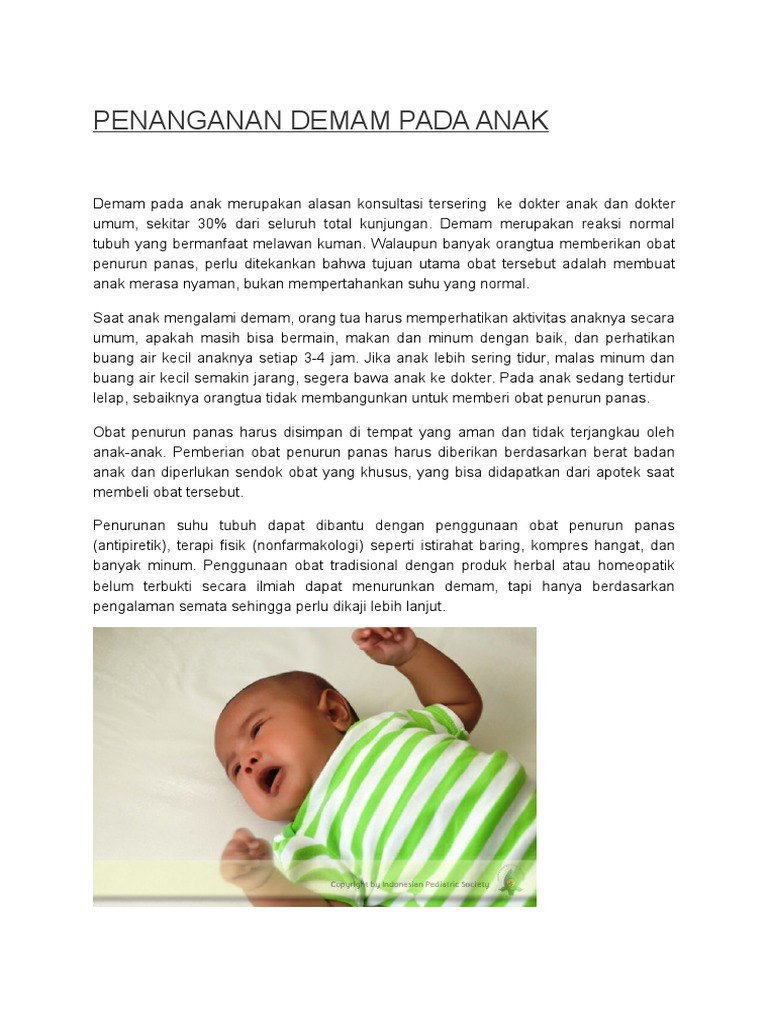 Obat tradisional demam pada anak. Untuk mengobati demam berdarah pada anak ada beberapa obat tradisional demam berdarah pada anak yang harus anda ketahui berikut ini. Demam karena infeksi yang suhunya bisa mencapai lebih dari 38c. Demam pada anak dapat dibedakan menjadi tiga yaitu.